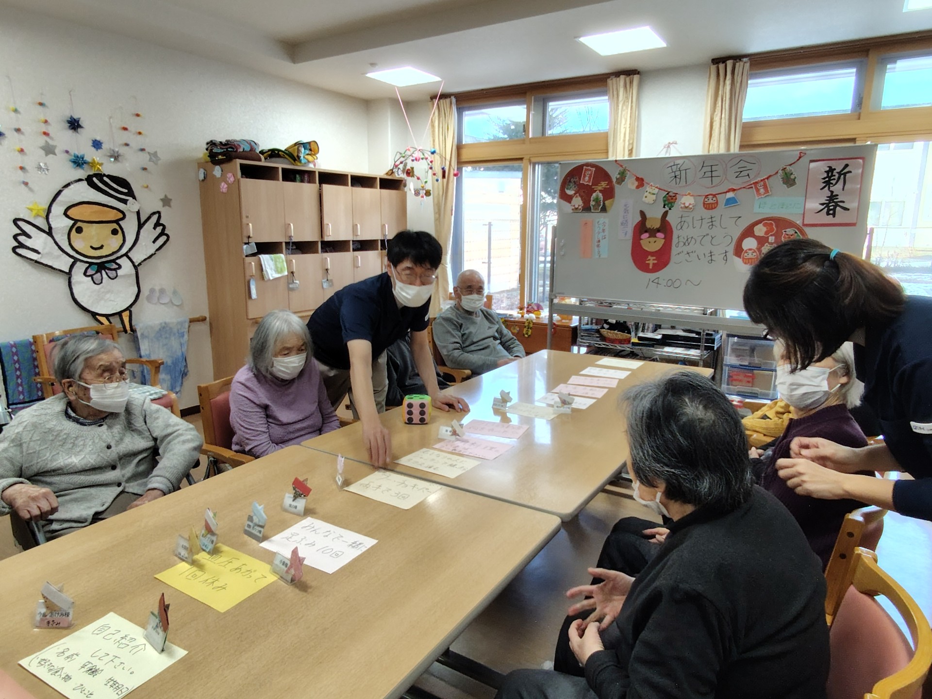 1/9 小規模多機能では新年会で、職員手作りの『すごろく』と『おみくじ』を行いました。