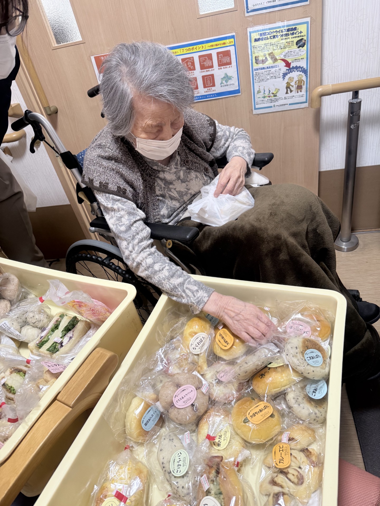 ニチイケアセンター苫小牧では毎週金曜日に近所のパン屋さんによる訪問販売があります。利用者様もパンが好きな方が多く、たくさんの種類のパンから楽しそうに選んでいました!おやつの時間には自分で選んだパンを食べられていました!とても美味しかったです!!