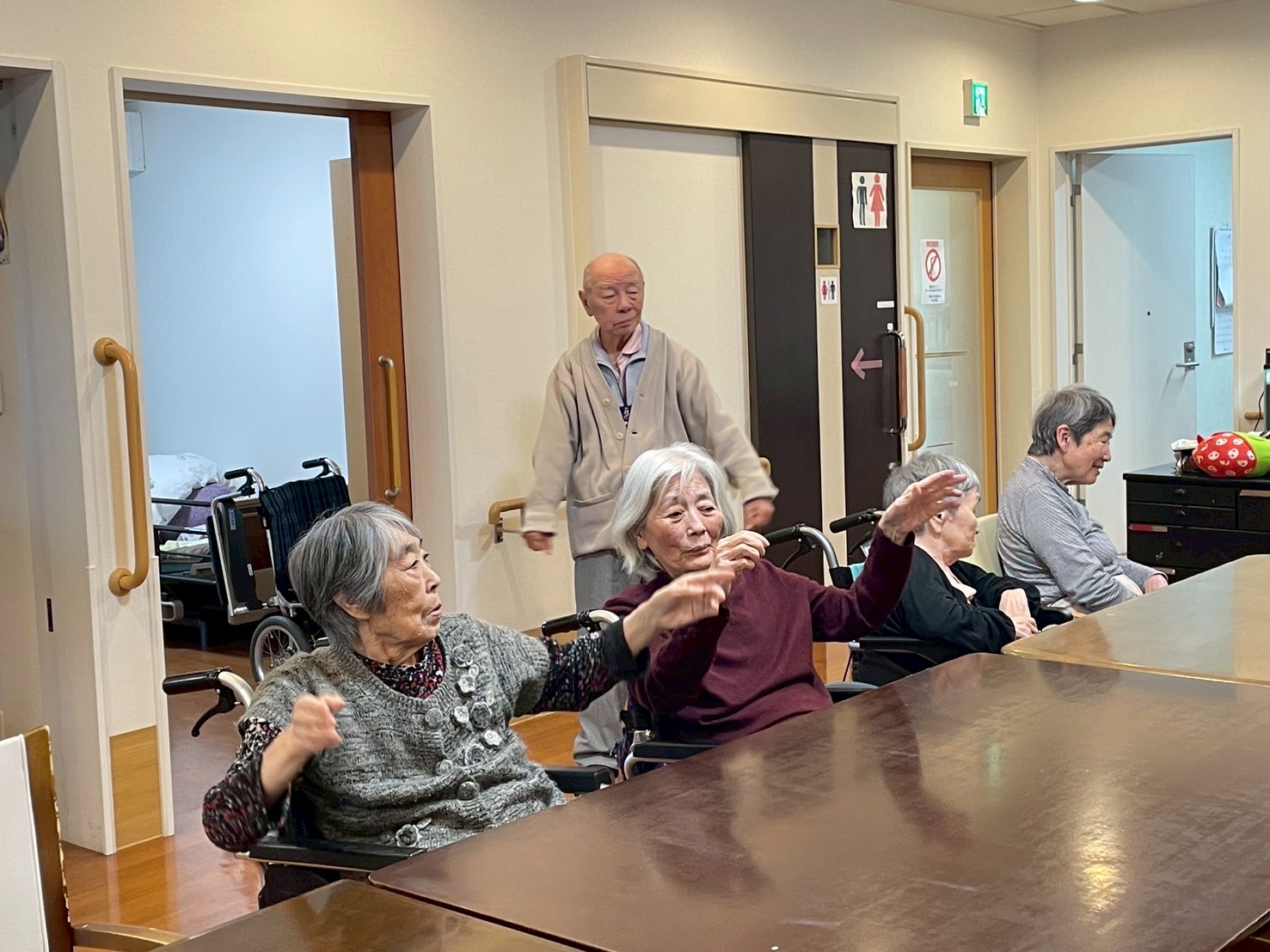 あまり交流の無い一階と二階の入居者様でしたが一緒に歌をうたったり、体操をしたり、談笑したりで思ったよりいい雰囲気で工事期間をお過ごしいただきました。