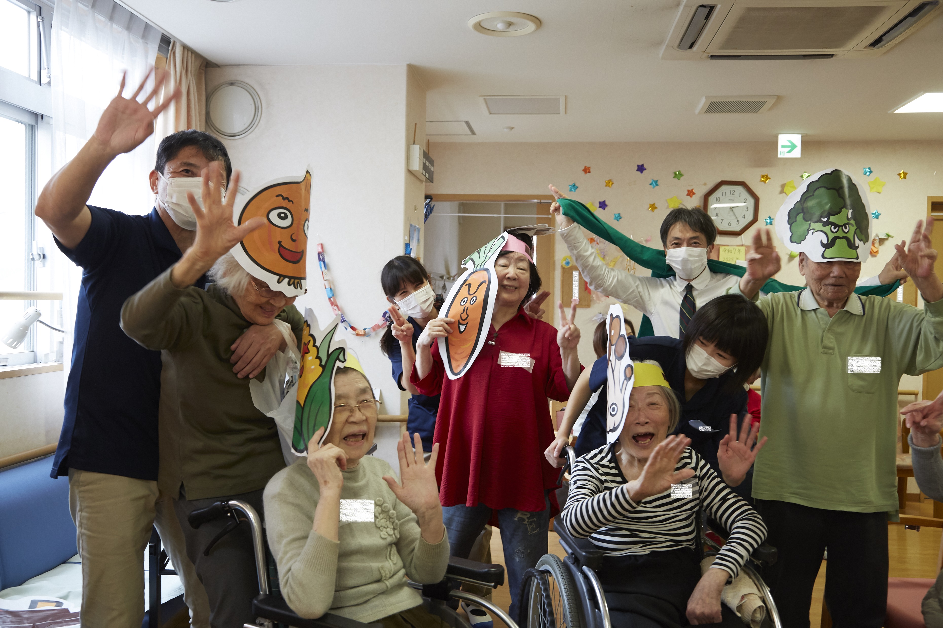 ボランティアのかたに先導頂きながら、利用者様とスタッフがお野菜になり、いろんなお野菜のお話をしながら手遊びをしました!!