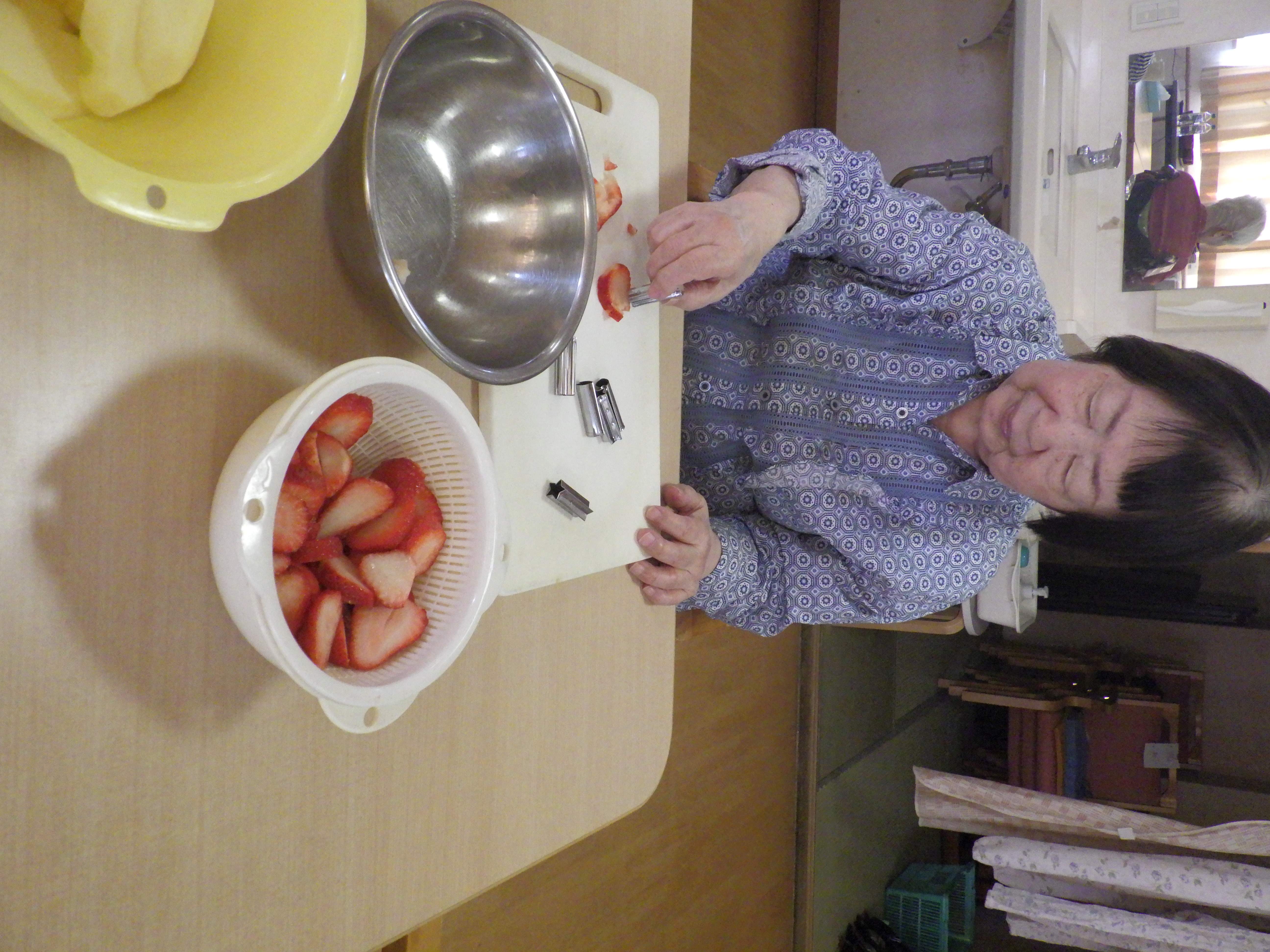 フルーツポンチをスタッフとご利用者様が一緒につくり