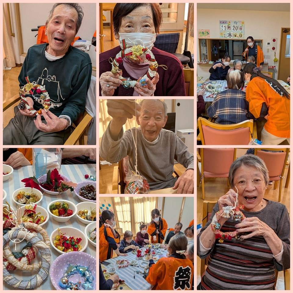 ご近所の方やご家族も参加下さいました。喫茶・お菓子くじ・クリスマスリース制作をおこないました。「また来年も楽しみにしてるよ。」との声がありました。楽しんでいただけてよかったです♪