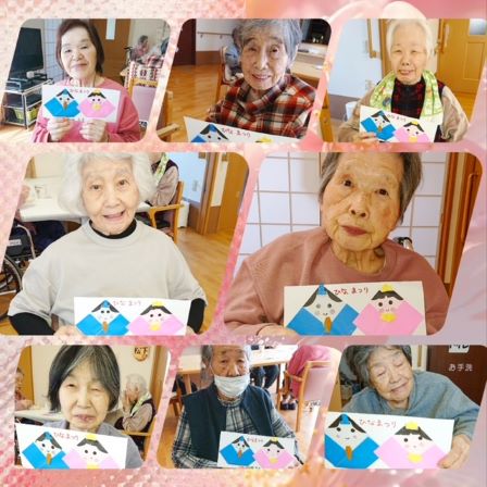 3月と言えばひな祭り。ホームでもひな人形を作ったりと春の雰囲気を感じて頂けたひとときになりました。