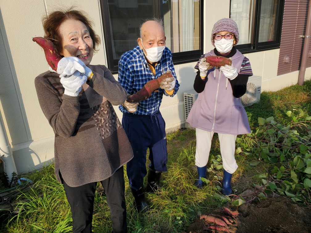 2025/11/30 更新 ニチイケアセンター小名浜では、ご入居されているお客様が穏やかに安心して施設生活が送れるよう支援しています。ご入居されているお客様やそのご家族様、支援するスタッフ全ての人が「笑顔」多い事業所づくりを目指しています!! 「秋の大収穫!!」 施設の畑にてさつまいもを栽培し、収穫しましたよ。 さまざまな形のお芋が、土から次々と現れ、大喜びでした!来年は何を畑で育てようか・・・? 楽しみです(笑)。