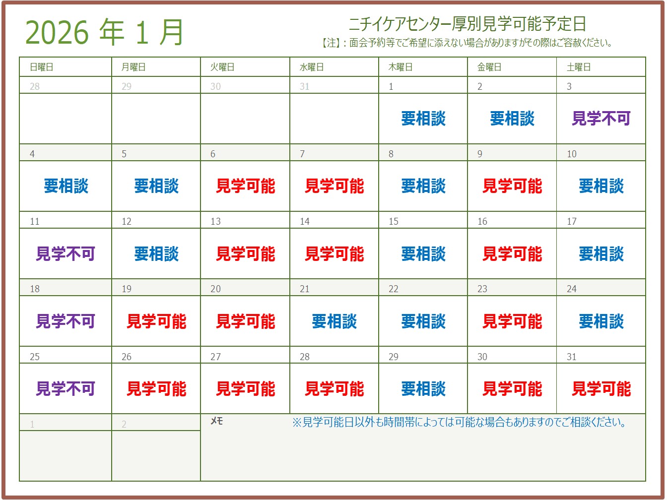 施設見学の際はご連絡下さい。