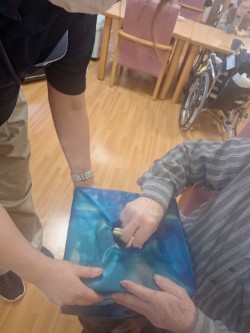体育の日には日常動作訓練も兼ね玉入れ大会が各テーブルで繰り広げられ、ハロウィンパーティでは、仮装とおやつレクを楽しまれ、音楽レクでは秋の歌の合唱を、11月の文化の日に向けた作品作りも、と、皆様お忙しい秋をお過ごしです。