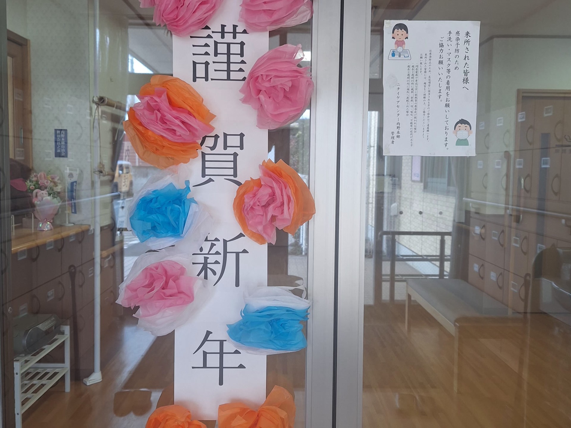 謹賀新年の看板作りにニッチの飾り付け、笑顔で参加してくださいました。
