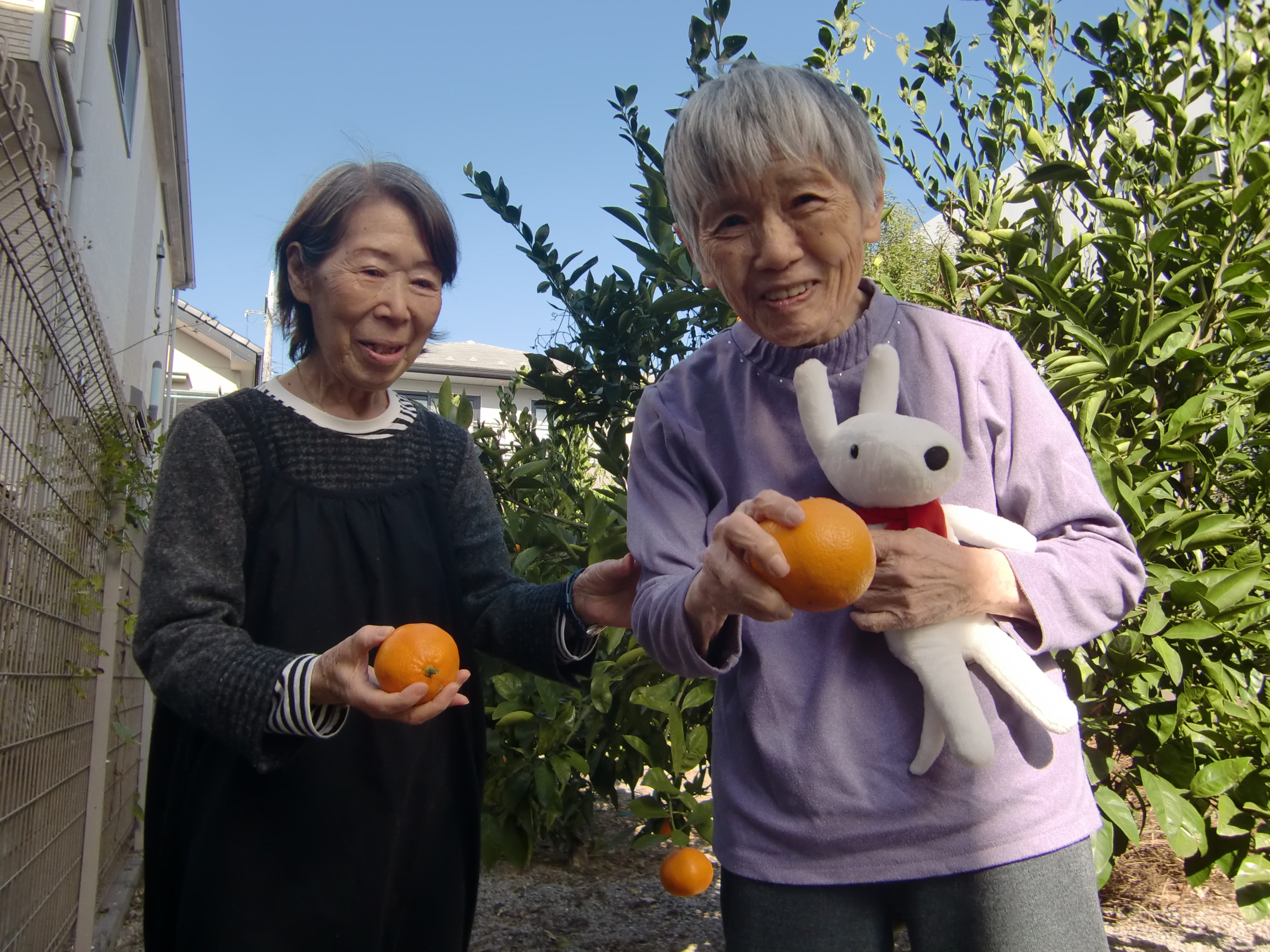 1月上旬・・お天気良く風も穏やかで日差しの下ではぽかぽかだった日に敷地内お散歩しました。少し寒くても外の空気は美味しいね~と、皆様ニコニコ笑顔。