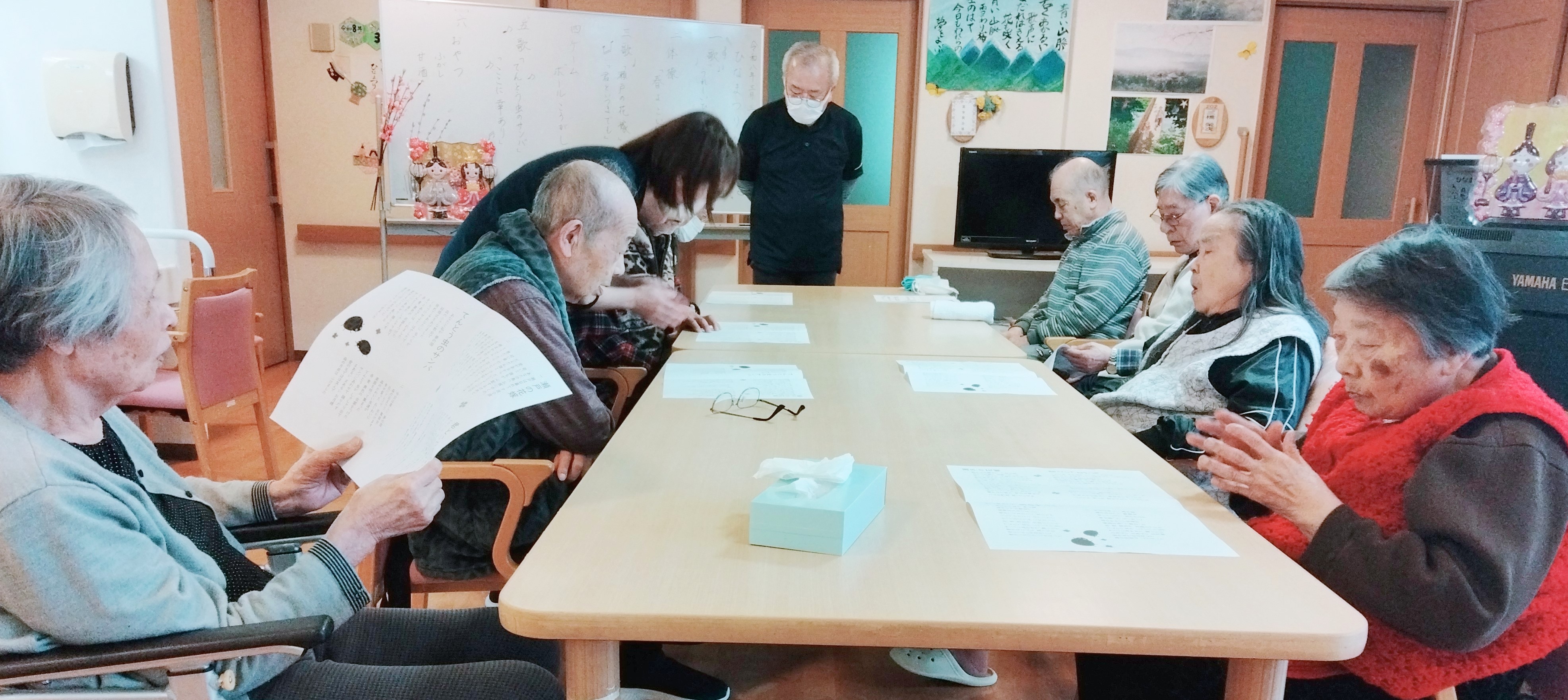 いつもにこにこ、けれど発語の見受けられないご利用者様なのですが【瀬戸の花嫁】を聞いて、左目から一粒涙がぽろり(´;ω;`)
