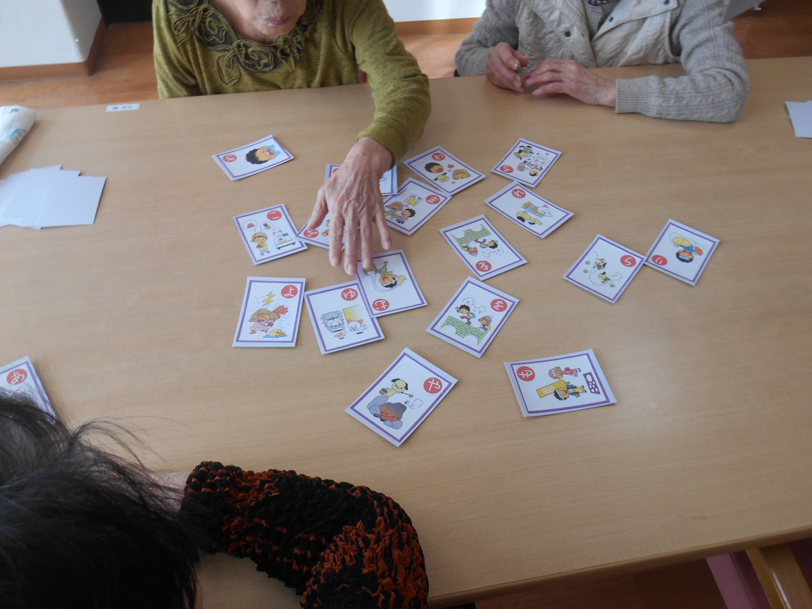 こんにちわ! ひとみでは毎日レクリエーションを行っております。本日はカルタの様子を紹介いたします。最初は静か行っていますが少しずつ本気モードに変わっていき最後は大笑いしながら白熱した戦いになってしまいます。皆さん楽しんで行っていますので安心してください。