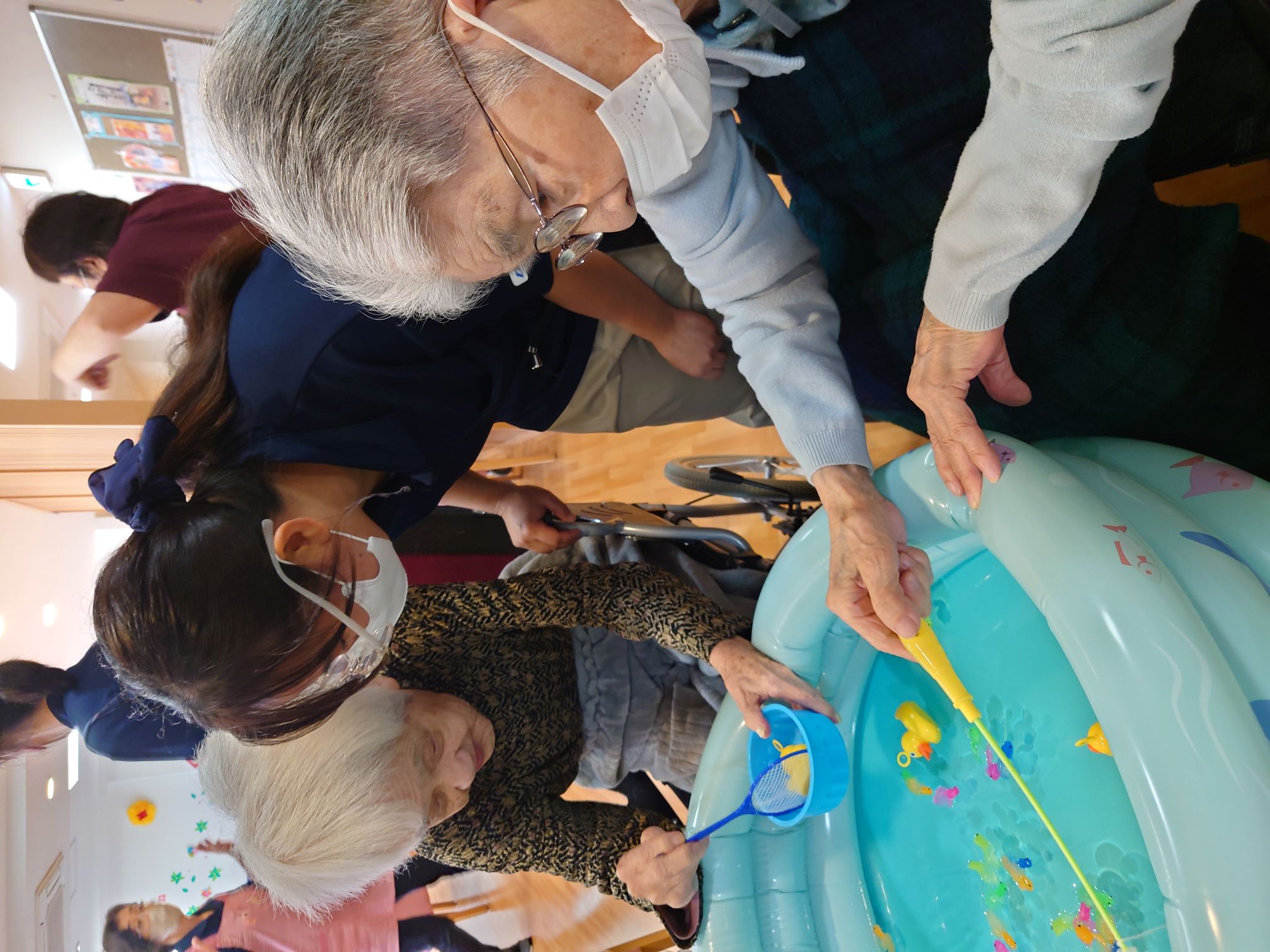 昨日ニチイ祭りを開催致しました。夏に新型コロナ感染症により延期になっていた縁日を行いました。射的や金魚すくい、綿あめを皆様童心に返って楽しまれていました。お昼は数年ぶりに復活を果たした握り寿司でした。エブリフード様に全面的にご協力いただき「美味しかった!また食べたい」とお声をいただきました。午後からはこゆるぎ職員が所属しているトレジャーガーデン様(プロのアーティスト様です!)にボランティアで演奏会を開いていただき見に来ていただいたご家族様にも大変ご好評をいただきました。ありがとうございました!施設概要にも写真がありますのでご覧ください。