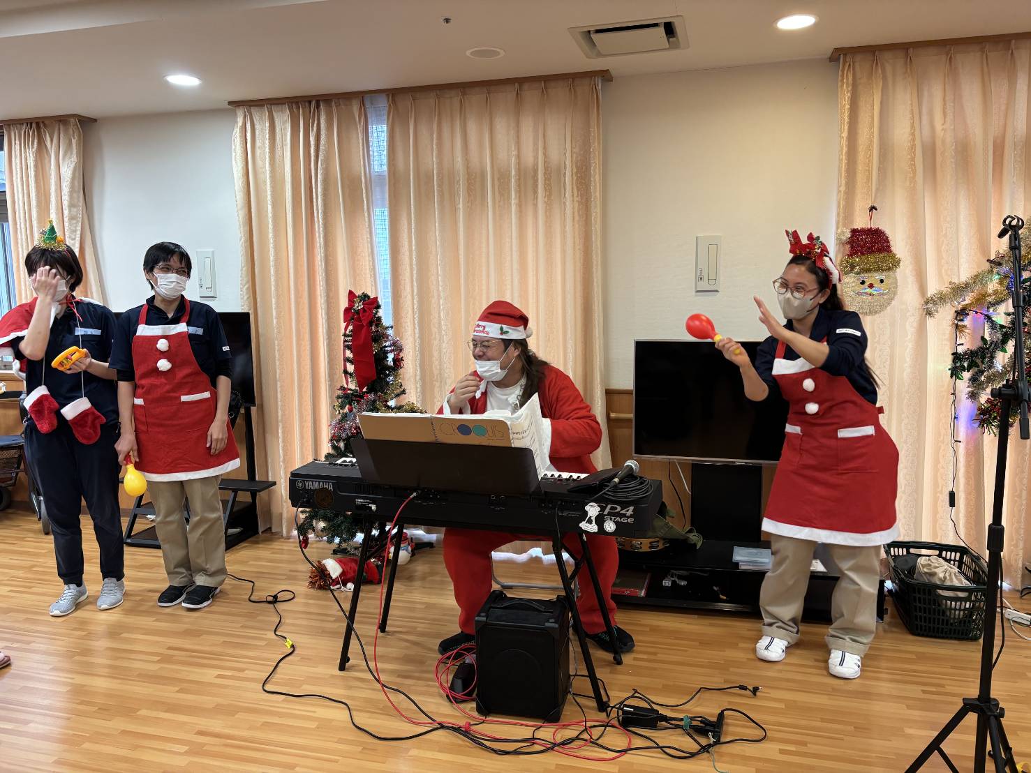 今回はクリスマス会を開きました。コンサートの後はプレゼントを用意し差し上げました。喜んでいただき頑張った甲斐がありました。