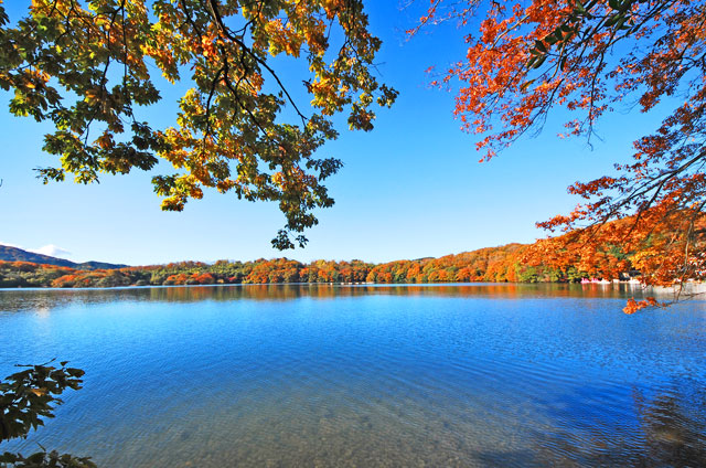 湖では釣りやボート遊びを楽しむこともでき、遊歩道があり落ち着きある湖畔をゆっくりと紅葉散歩することもできます。また、観光地として人気の高い伊豆高原周辺のため、東伊豆旅行の立ち寄りにはとてもアクセスが良い場所にあります。
