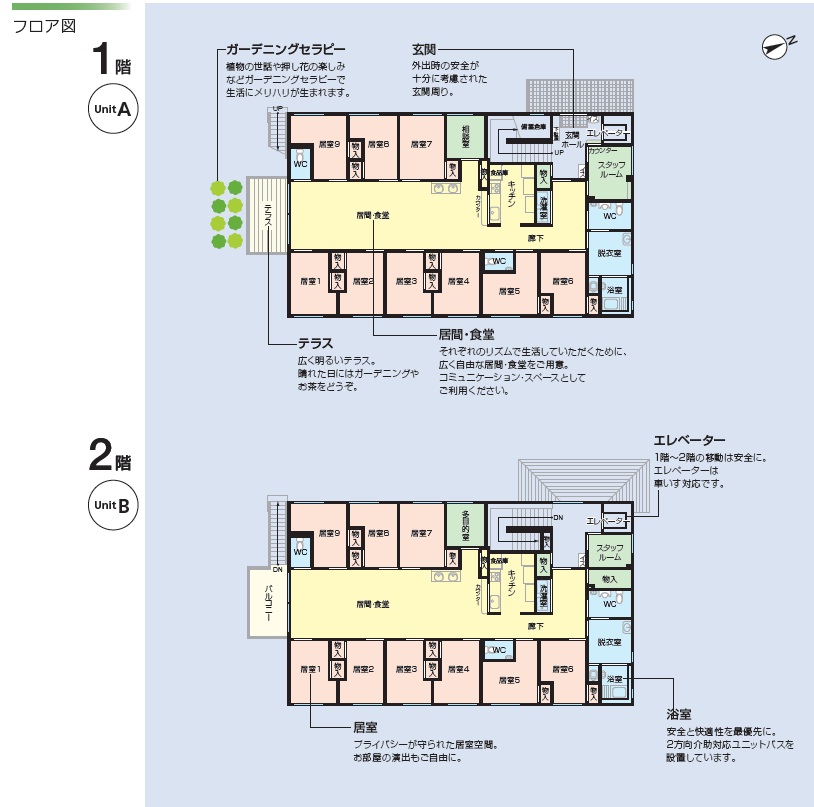 桑名市の南、員弁川に近い昔からの家と新興住宅とが入り混じった地域に桑名いずみはあり、近くには「長島スパーランド」や「なばなの里」があります。開設は平成26年7月のグループホームです。