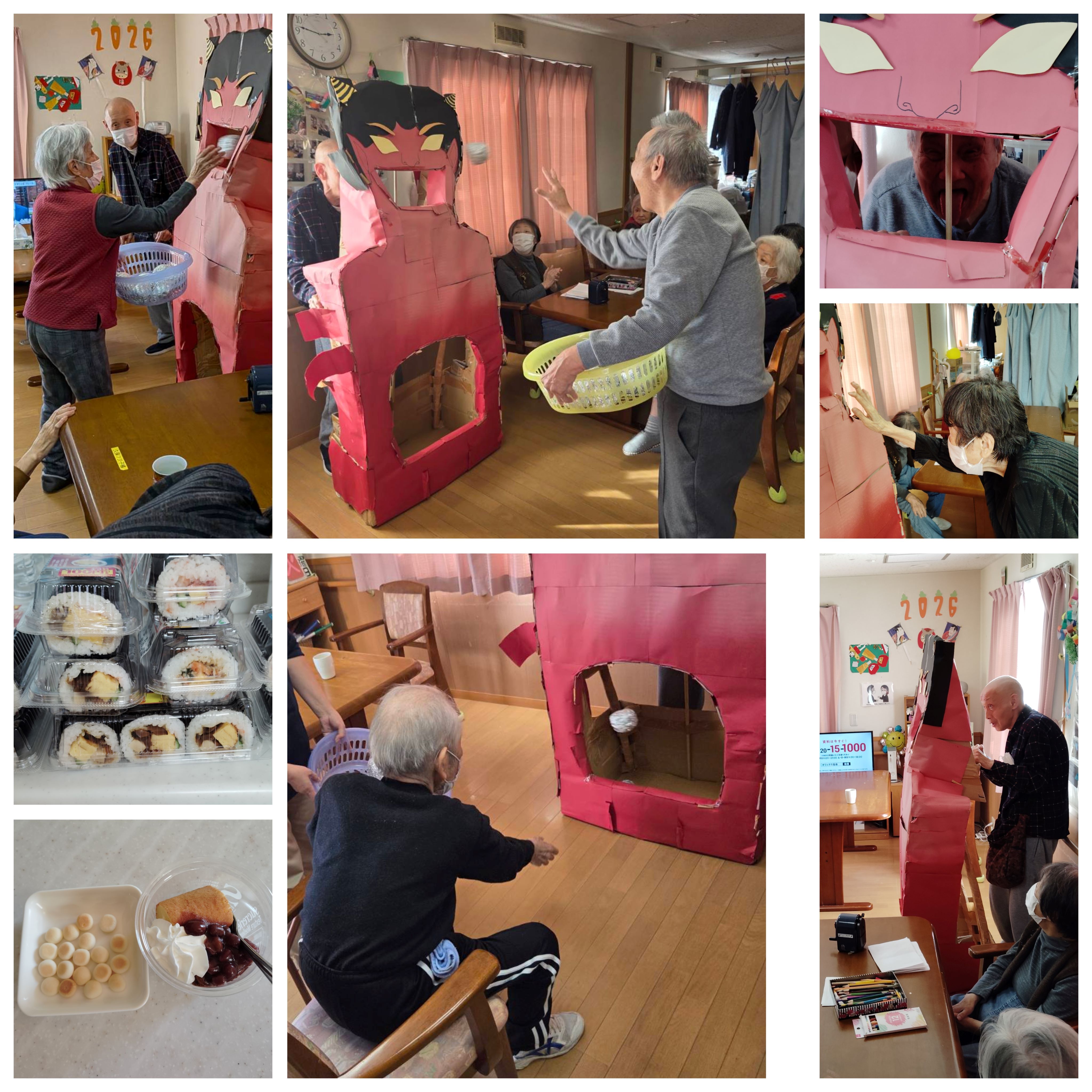 鬼の顔もしくは、お腹のポケットに玉を投げ入れてもらいます。