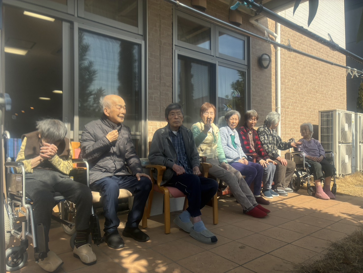 先日、お天気が良かったのでお客様皆様でお庭に出て日向ぼっこを楽しまれました。