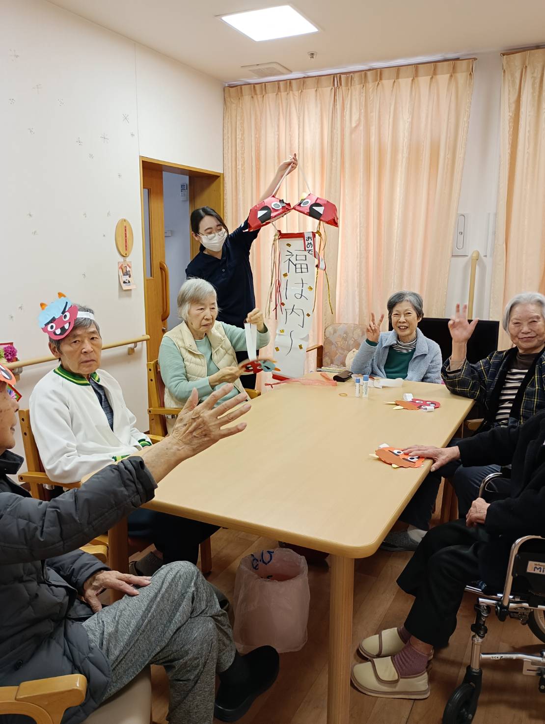 「福は~うち~」の元気な掛け声とともに、当ホームで節分イベントを行いました。
