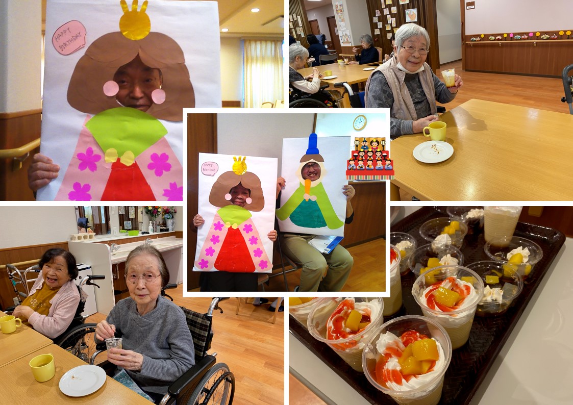 スタッフ力作の顔出しパネルを使用した記念撮影会&3か月毎に開催しているケーキバイキングを実施しました。