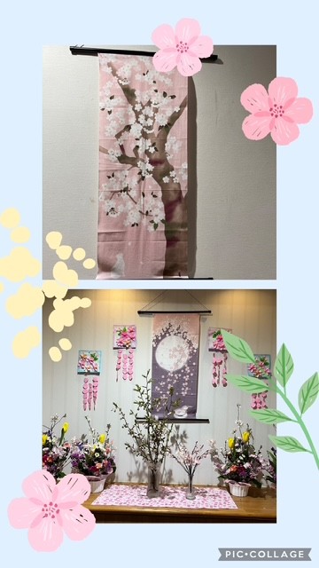 ホームのエントランスも桜や春の花を飾り春爛漫となっています。