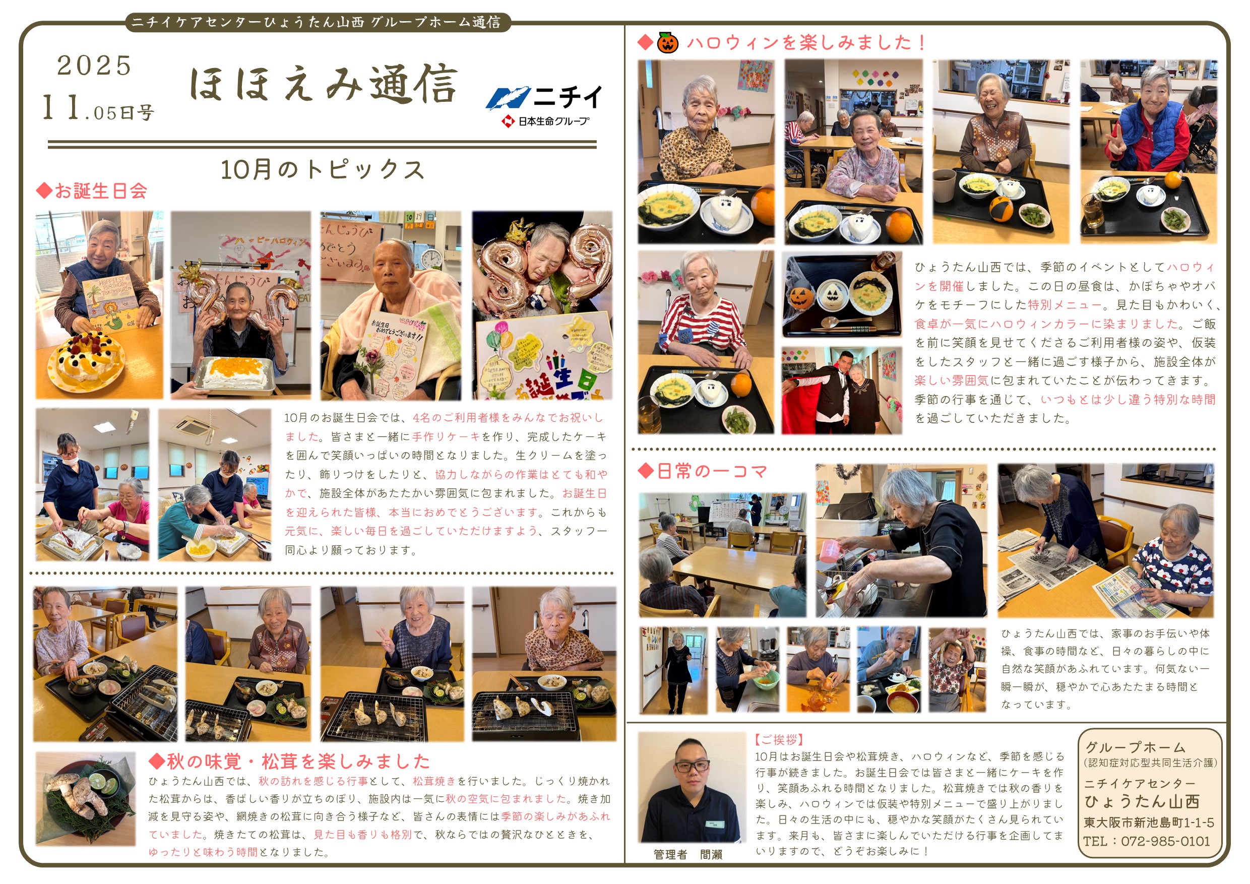 東大阪市のグループホーム|ニチイケアセンターひょうたん山西でお誕生日会・松茸焼き・ハロウィンイベントを開催しました