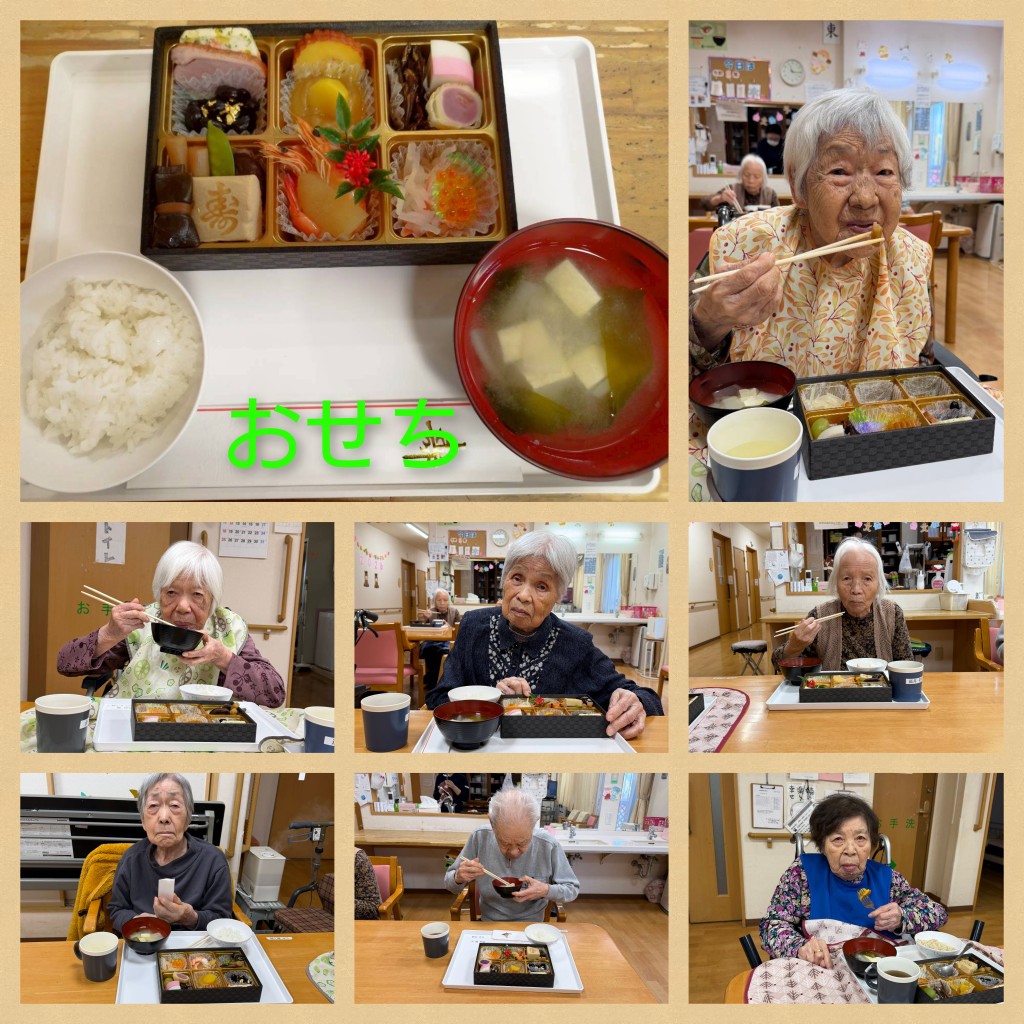 新しい年を迎えおせち料理を召し上がらました。その後書初めをしました。皆様一年ぶりの筆でしたが上手に書かれました。