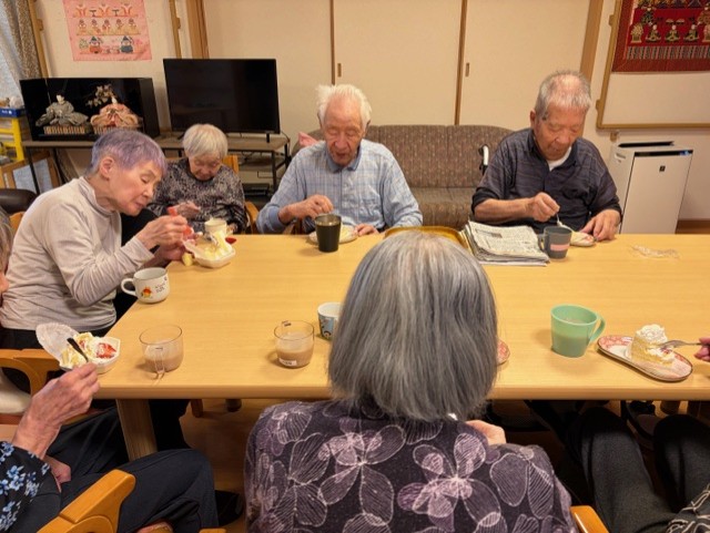 さて、しののめでは皆様変わりなく過ごされております。3月の行事は、お雛様を囲んでケーキを食しました。唱歌を歌ったり、ゆったりとした時間を過ごされました。