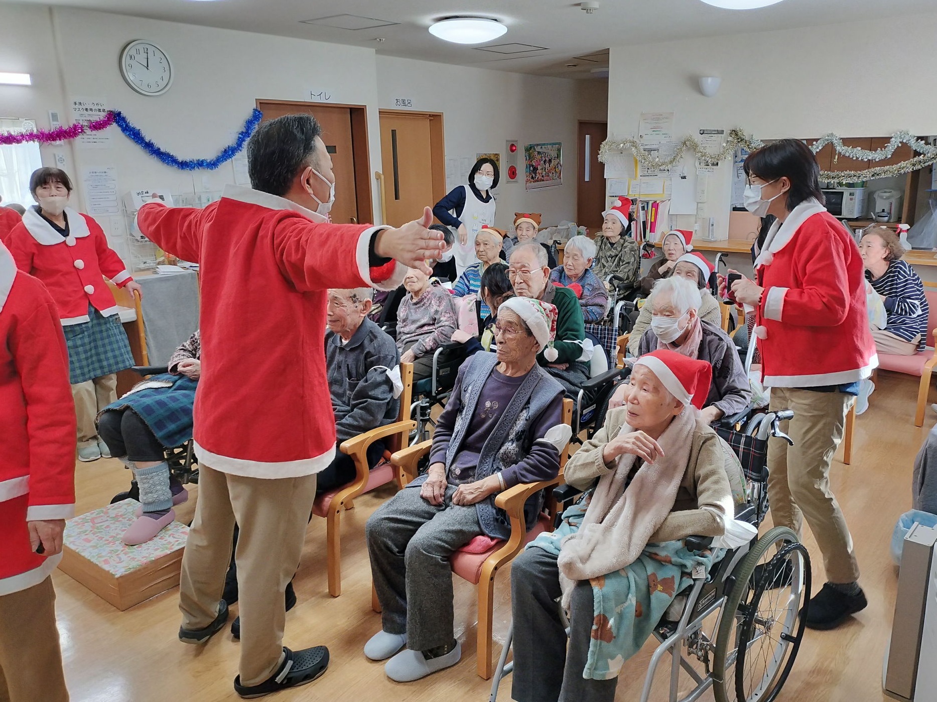 今月17日、ホームにてクリスマス会を催しました。お絵描きゲームやジェスチャーゲーム、ビンゴゲームなどのレクリエーションを行い、笑顔と笑い声があふれる楽しい時間となりました。その後は皆さんでオードブルを囲みながらお食事会となり、いつもとは少し違う特別な雰囲気を楽しまれました。最後にはクリスマスケーキも召し上がり、心もお腹も満たされる、温かなひと時となりました。