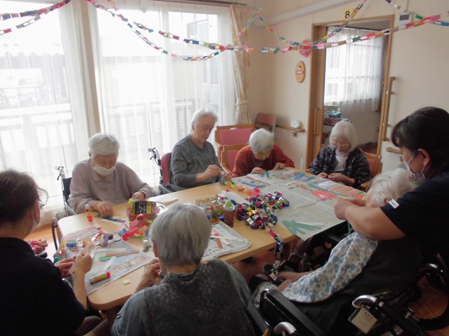 ご入居の皆様の作品展示もあり、皆さんが一生懸命作った