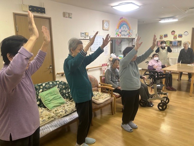 お客様、スタッフともに室内で体を動かし元気に過ごしています!早く暖かくなるといいですね