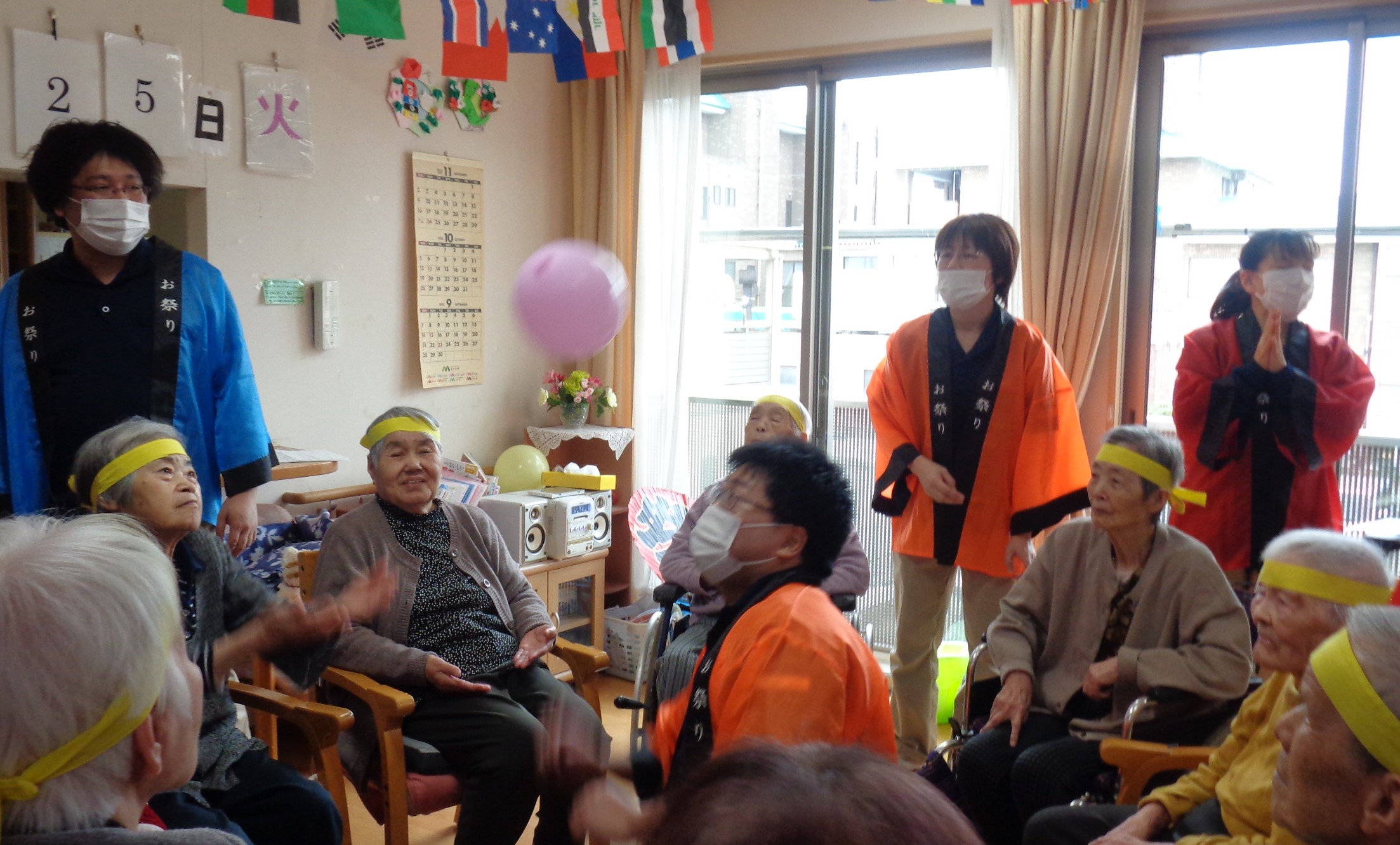 2025/12/16 更新 寒さが身に染みる今日この頃、皆様いかがお過ごしでしょうか。 ニチイケアセンター福島野田では、ニチイまつり「ほほえみ運動会」が開催されました! 競技は風船バレー・お玉リレー・ペーパー綱引きそして玉入れ。皆さんハチマキを巻いて気合も十分! 今回はご家族もご参加くださり、ご利用者様と楽しんでいただきました。 寒い季節となってきました。適度に運動もして体を温めていきたいですね。