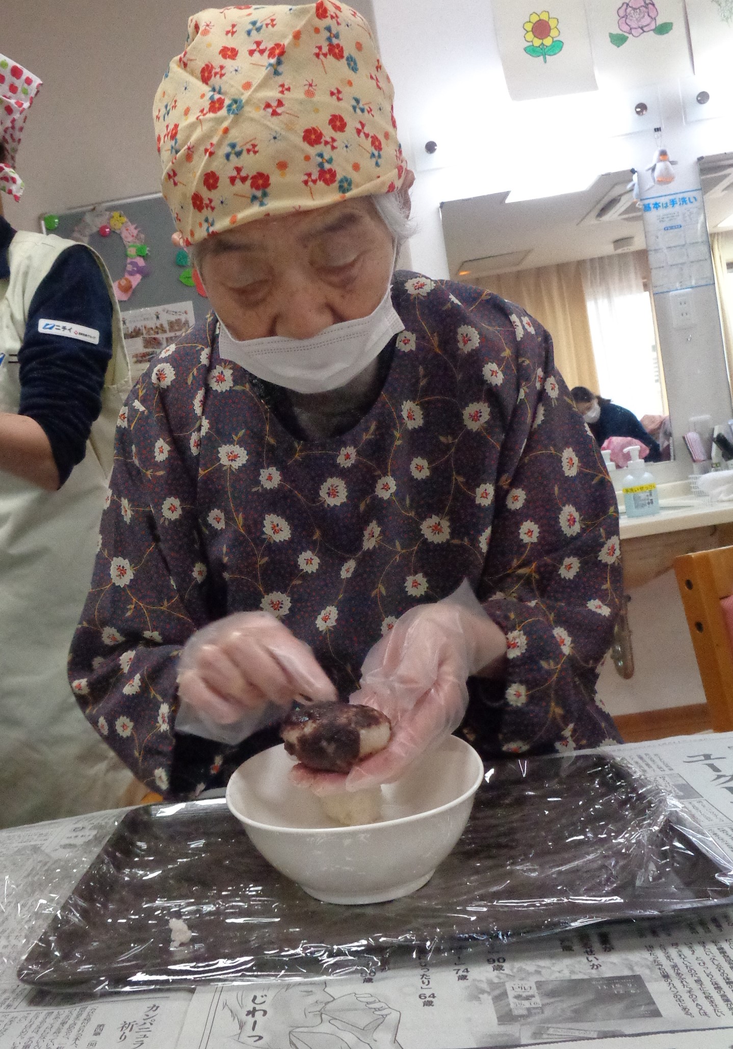2026/02/06 更新 寒気の中にも早春の息吹きを感じる季節となりました。 皆様いかがお過ごしでしょうか。 ニチイケアセンター福島野田では、先日ぼたもち作りを行いました! 食べやすい柔らかさに蒸かしたお米を丸めて、 「あんこ」「きなこ」「ずんだ」からお好みの味付けをしていただきました。 皆様とても手際が良く、あっという間に完成! 出来上がったぼたもちはお昼ご飯に美味しくいただきました♪