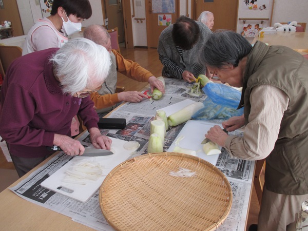 2026/02/02 更新 大根をたくさんいただいたので切り干し大根を作ることにしました。 皆様、ピーラーや包丁でどんどん切ってくださいます。 今年の1月は全然雨が降らず乾燥していたので、ざるに4つ分の大根もきれいに乾き、無事たくさんの切り干し大根が出来ました! 煮物にしたり、お味噌汁に入れたりと大活躍しています。 見学等 随時受け付けております。 お気軽にお問い合わせください。 電話 0467-71-1781