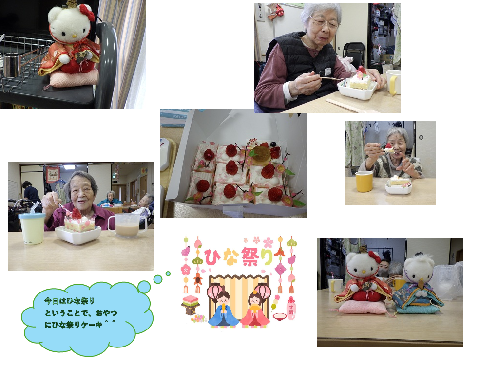 こちらではおやつにひな祭りケーキを提供させて頂きました^^