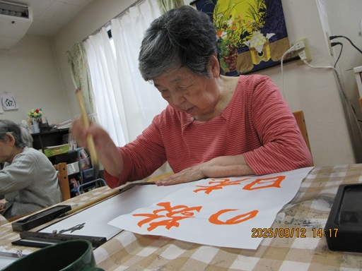 2025/09/29 更新 2025/9/12 9月のイベント. 毎月習字のボランティアがあり、今月は2階のフロアで対応して頂きました。 自立度の高い入居者様が多くいらっしゃるフロアですので、この真剣さ伝わりませんか? 見学随時受付中。
