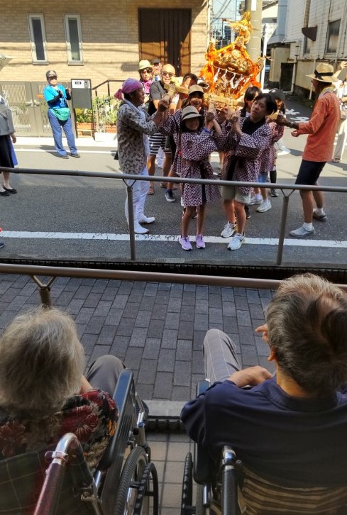 中でも毎年の楽しみは施設の前を子ども神輿が通るので、入居者様は今か今かと待ち構えています