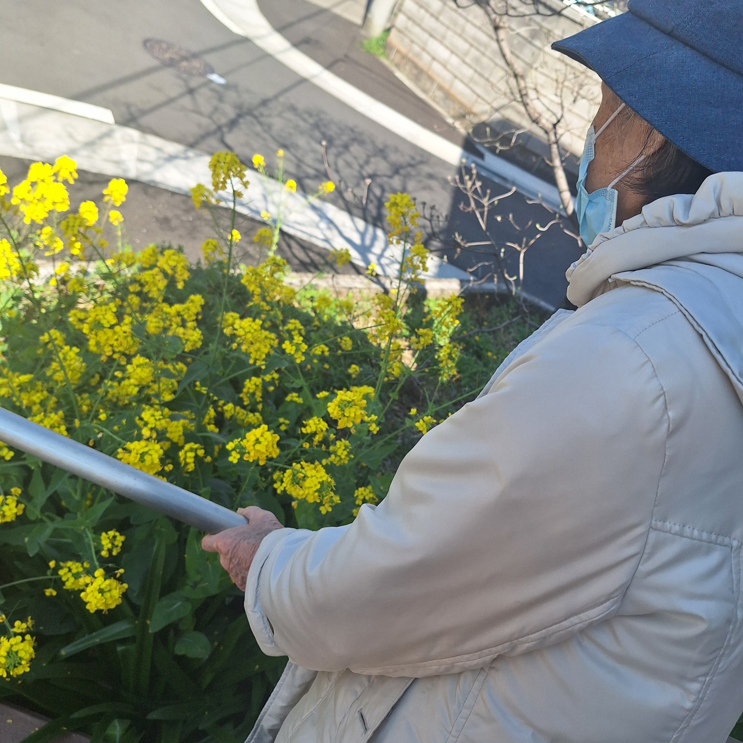 2026/04/01 更新 ホームの前の花壇にも春の訪れが♪ 菜の花が満開に咲き誇っています☆ この後、近くの小学校まで桜を見に行ってきました♪