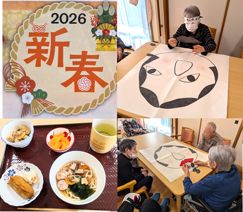 元旦には利用者のみなさまと「福笑い」を行いました!
