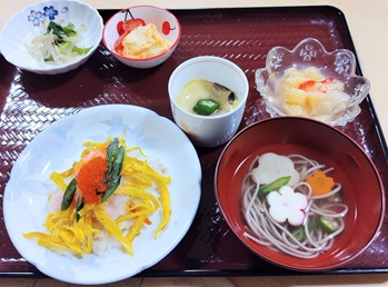 今回のお写真はひな祭りにちらし寿司御膳(手作り)を提供させていただきました♪