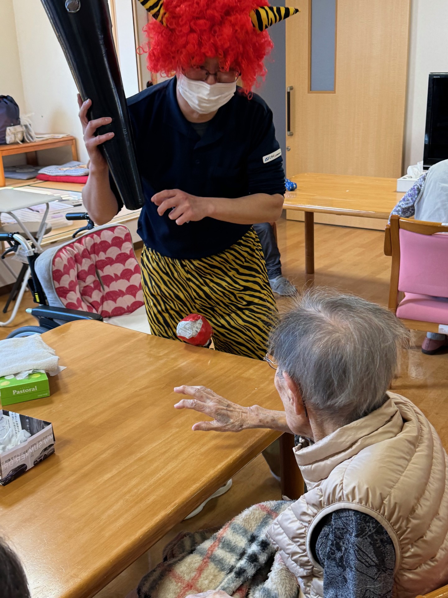 まだ寒い季節が続いています。今年の節分もスタッフが鬼の仮装をして豆ではなく、ボールを持っていただき鬼にぶつけていただきました。利用者様の中には本気で投げていただき楽しまれていました。まだまだ寒い季節ですので風邪に気をつけスタッフ、利用者様と共に健康に過ごしていきたいと思います。