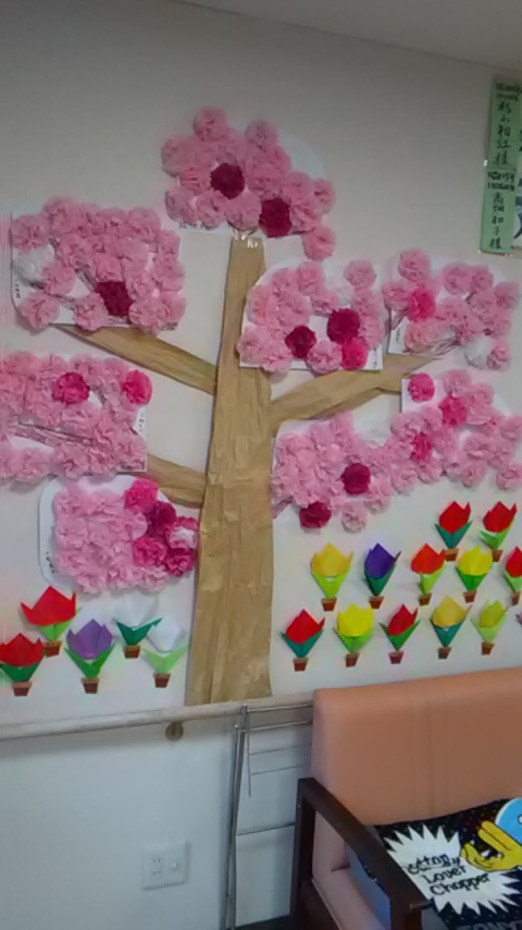 1月は行く、2月は逃げる、3月は去ると言いますが、あっという間に、4月になってしまいました。春を待つ間、ホームのリビングには、皆様で作った桜が満開になり、チューリップ、菜の花が咲きました。中之郷の4月のイベントは、桜井戸、中之郷公園、中吉田公園へのお花見散歩です。桜の花に負けない綺麗な笑顔で、写真を撮ってきます。日ごとに暖かくなり、春風が心地よく感じる季節となり、大変楽しみにしています。昨日は豪雨で桜の花が散ってしまわないか…と心配していましたが大丈夫でした。夏が来る前の、心穏やかな春のひと時になります様、願っています(*'▽')