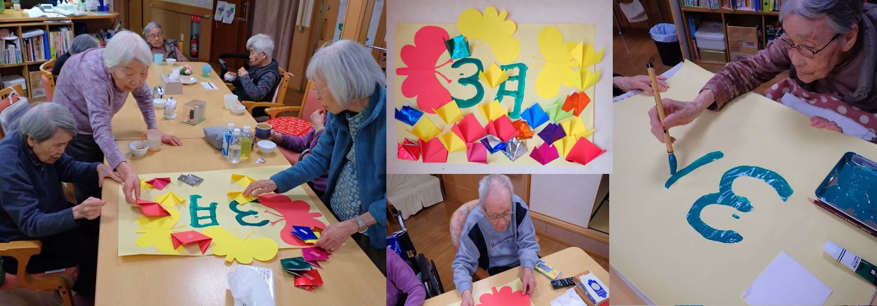 2026/03/03 更新 こんにちは!ほほえみ有玉です。 今年も3月になりました、春の足音が・・というよりも早くも夏日があったりして夏の足音が聞こえてきそうな陽気の日も出てまいりました。 写真は、先日、3月らしい絵ということで、お花(チューリップ)の周りを蝶が舞っている様子を折り紙等で表した掲示物を皆様と作成した時の様子です。玄関に掲示してありますので、お越しの際はご覧いただけますと幸いです。 ご見学等のお問い合わせ、いつでもお待ちしております!