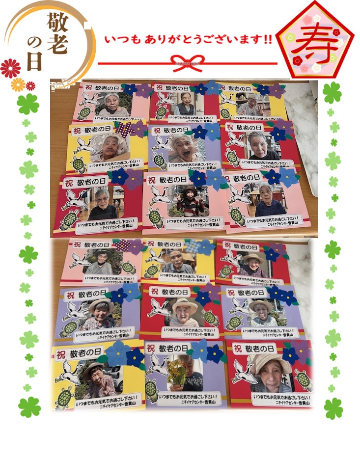 9月に入り暑さがなかなか和らぎませんが、香貫山の皆様はご元気にお過ごしです。9/15の敬老の日に向けて職員で「いつもありがとうございますカード」を作成いたしました。皆様に喜んで頂けると嬉しいです。
