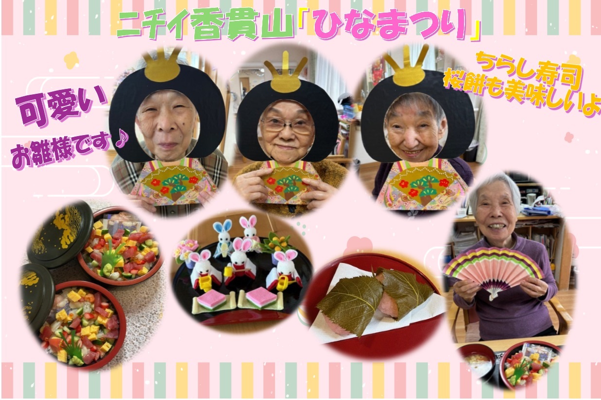 また、お昼のちらし寿司やおやつの桜餅に「女の子の日だもんね・・嬉しいよ♡」と皆様喜ばれていました。