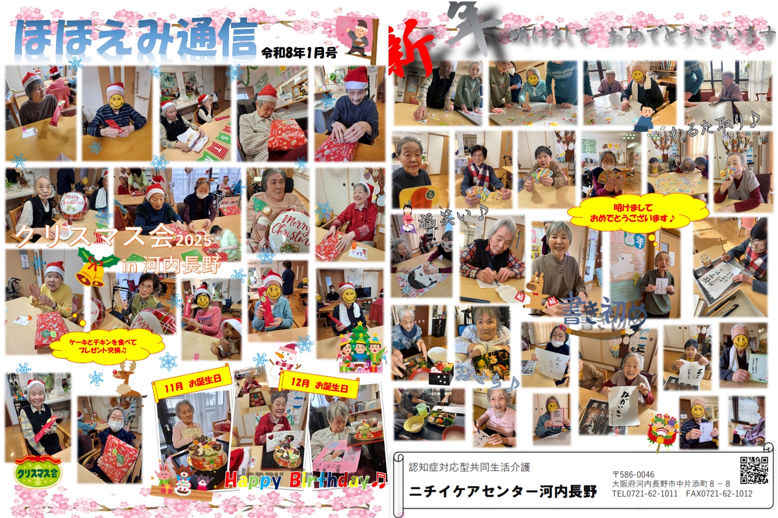 12月25日には、毎年恒例のクリスマス会を実施し、チキンやケーキ等、クリスマスらしいお食事を召し上がり、皆様でプレゼント交換を行い、2025年の締めくくりに、スタッフも一緒になって楽しんで頂きました。