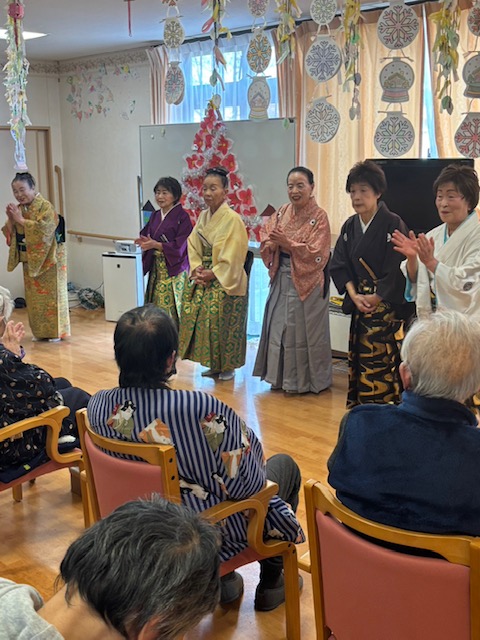 2026/01/19 更新 この日はニチイまつりが開催され、日本舞踊の鑑賞を行いました。華やかな衣装と、しなやかで美しい舞に、皆さま熱心に見入っておられました。音楽に合わせて静かに体を揺らしたり、舞が終わると自然と拍手が起こる場面もあり、会場は温かな空気に包まれました。 日本の伝統文化に触れることで、懐かしさを感じていただくとともに、心豊かなひとときを過ごしていただくことができました。お祭りならではの、特別な時間となりました。