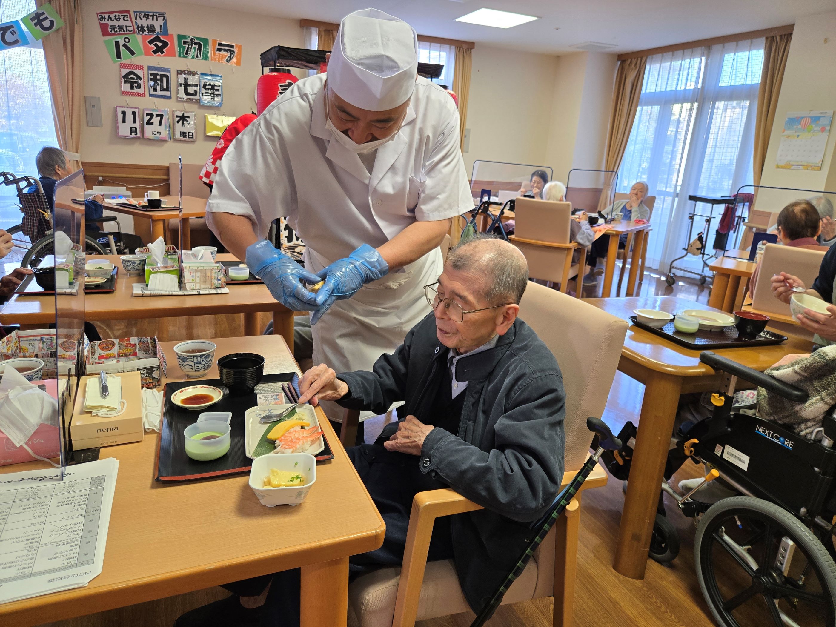 11月はお昼ご飯に握りたてのお寿司をお出しするイベントがありました。