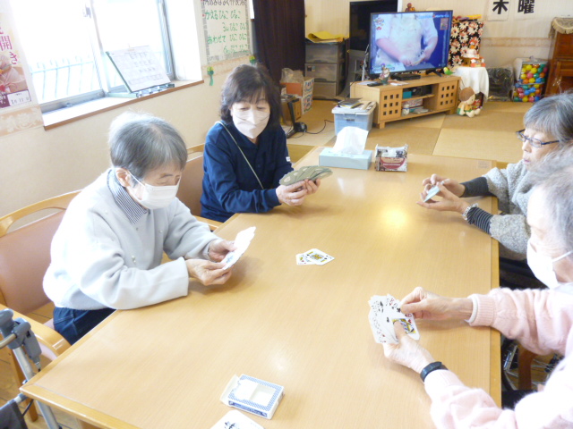 レクリエーションとは別に、余暇時間に気の合う方々で、トランプや双六などをされています。楽しそうな声が事務所まで聞こえ、ほっこりとした気持ちになります。