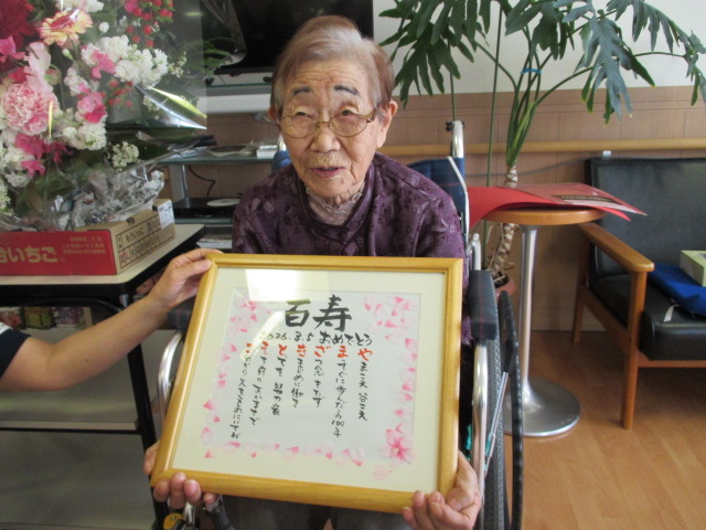 今年も百寿を迎えられたお客様がいらっしゃいました。昨年百寿を迎えられたお客様は101歳に!(^^)!