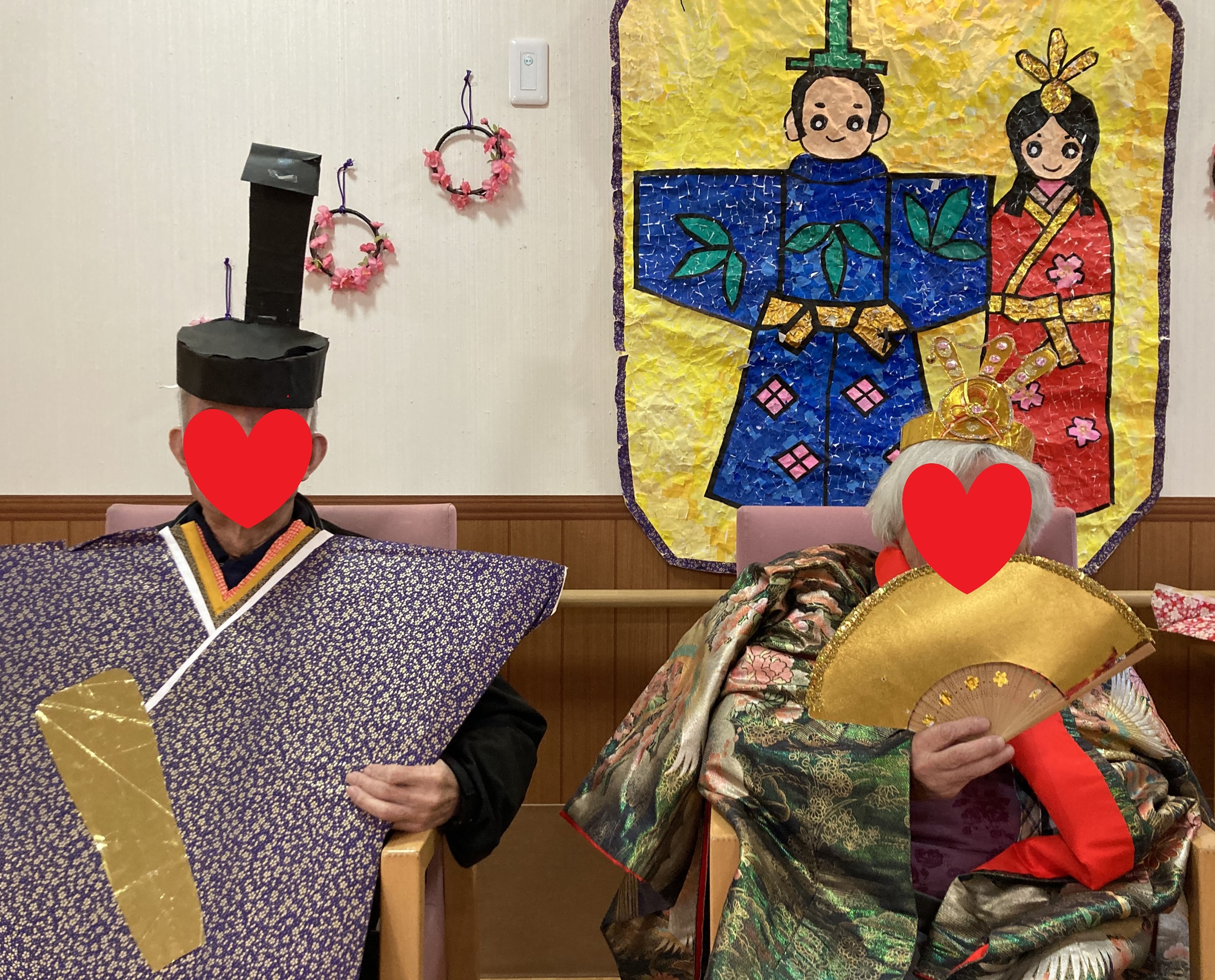 春の暖かい陽気に桜の花も散り始めた時期となりました。3月1日に「ひな祭り」を行いました。ひなあられ何個積めるかゲームでは真剣な表情、お内裏様とお雛様に扮した写真では照れながらも笑顔と、お客様の色々な表情をカメラに収めることが出来ました。甘酒なども振舞われ盛沢山な行事になりました。今後もお客様に楽しんで頂けるレクリエーションを提供していきたいと思います。