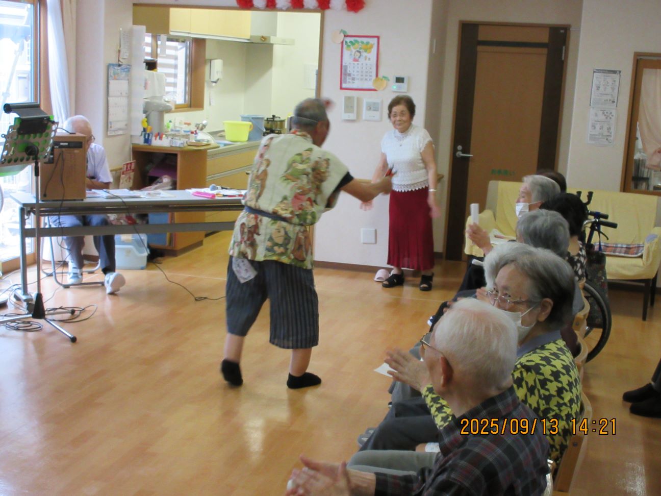 2025/10/06 更新 9月といえば、敬老会ですね。市内のボランティア団体の皆さんが慰問に来て下さいました。みんなで一緒に歌ったり、踊りを見たりと楽しい時間を過ごしました。 これからも、お元気でお過ごしください。 ご見学、ご相談、随時対応しております。土・日曜日も可能ですのでお気軽にお問い合わせください。